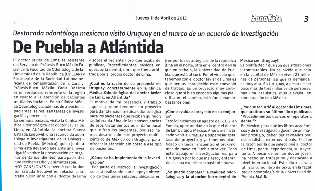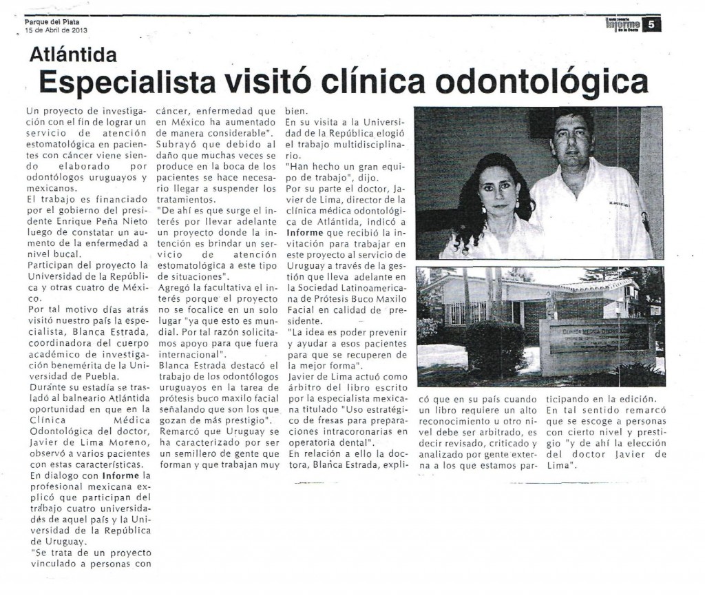 El 4 de Abril del 20013,visitó la Clínica Médica Odontológica la especialista Blanca Estrada.